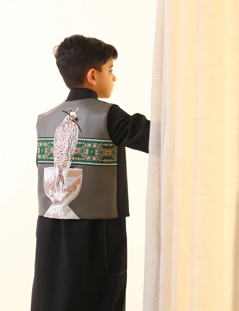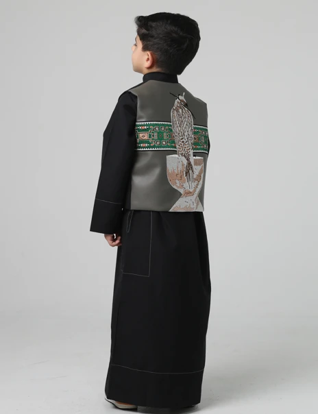 فيست من نفس الخام والظهر جلد مع تطريز ( صقر )