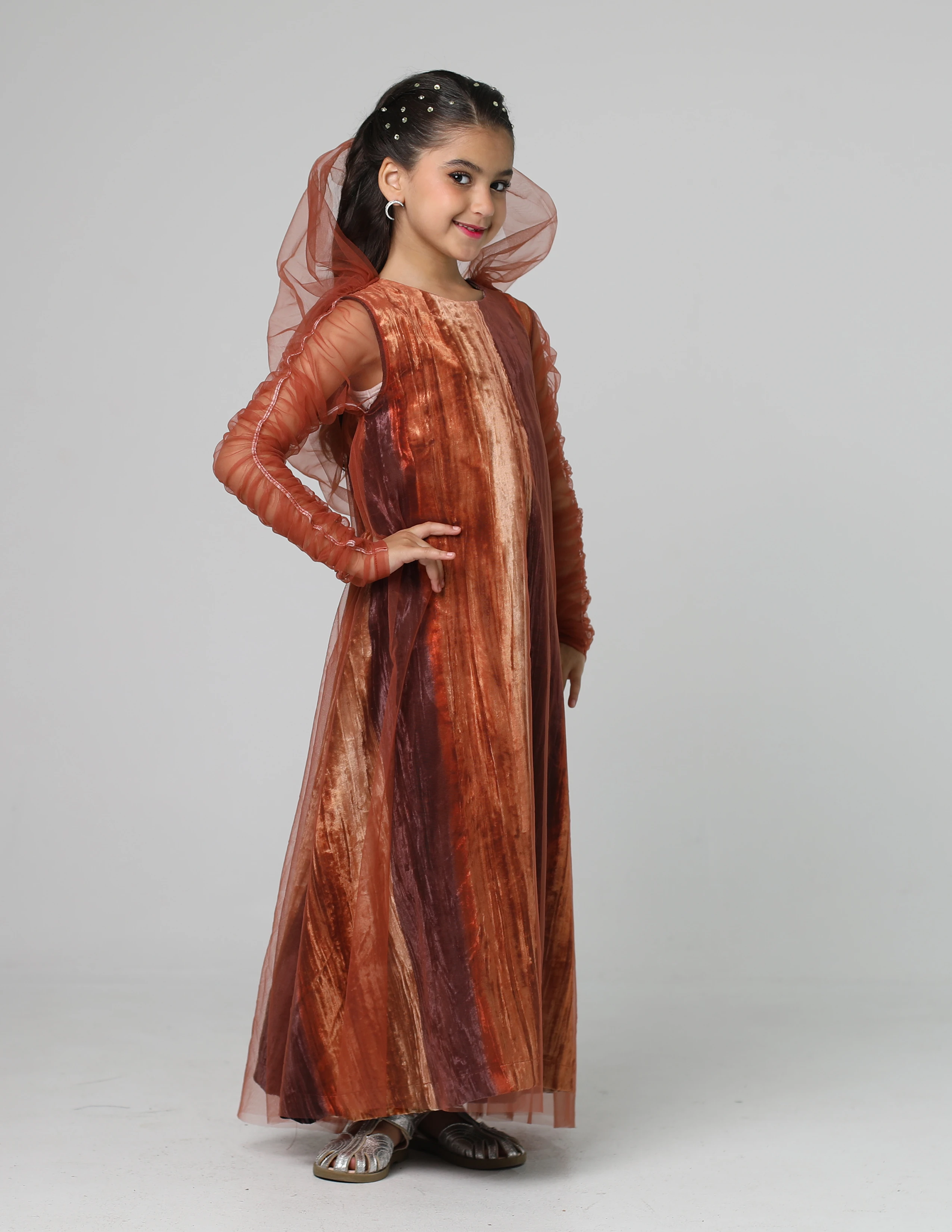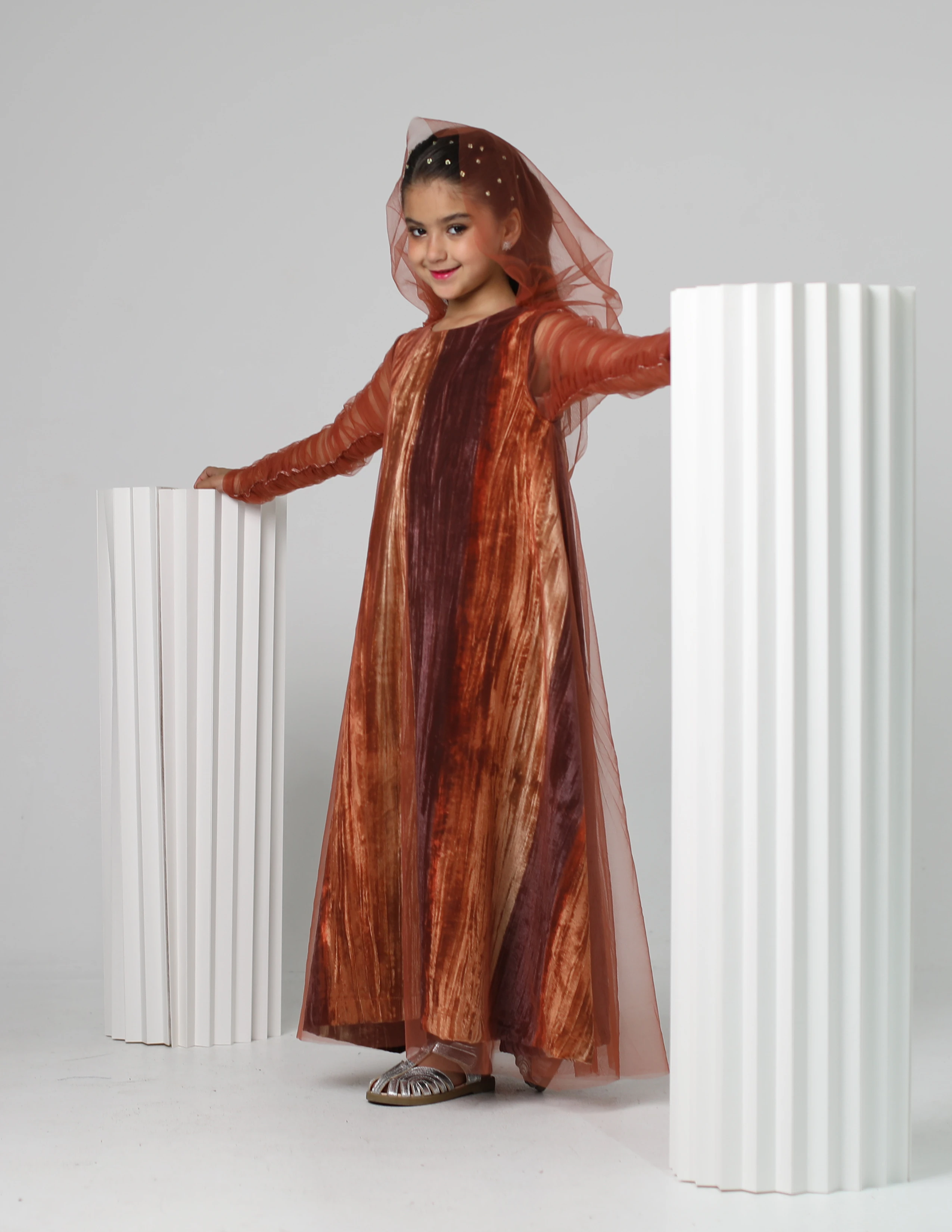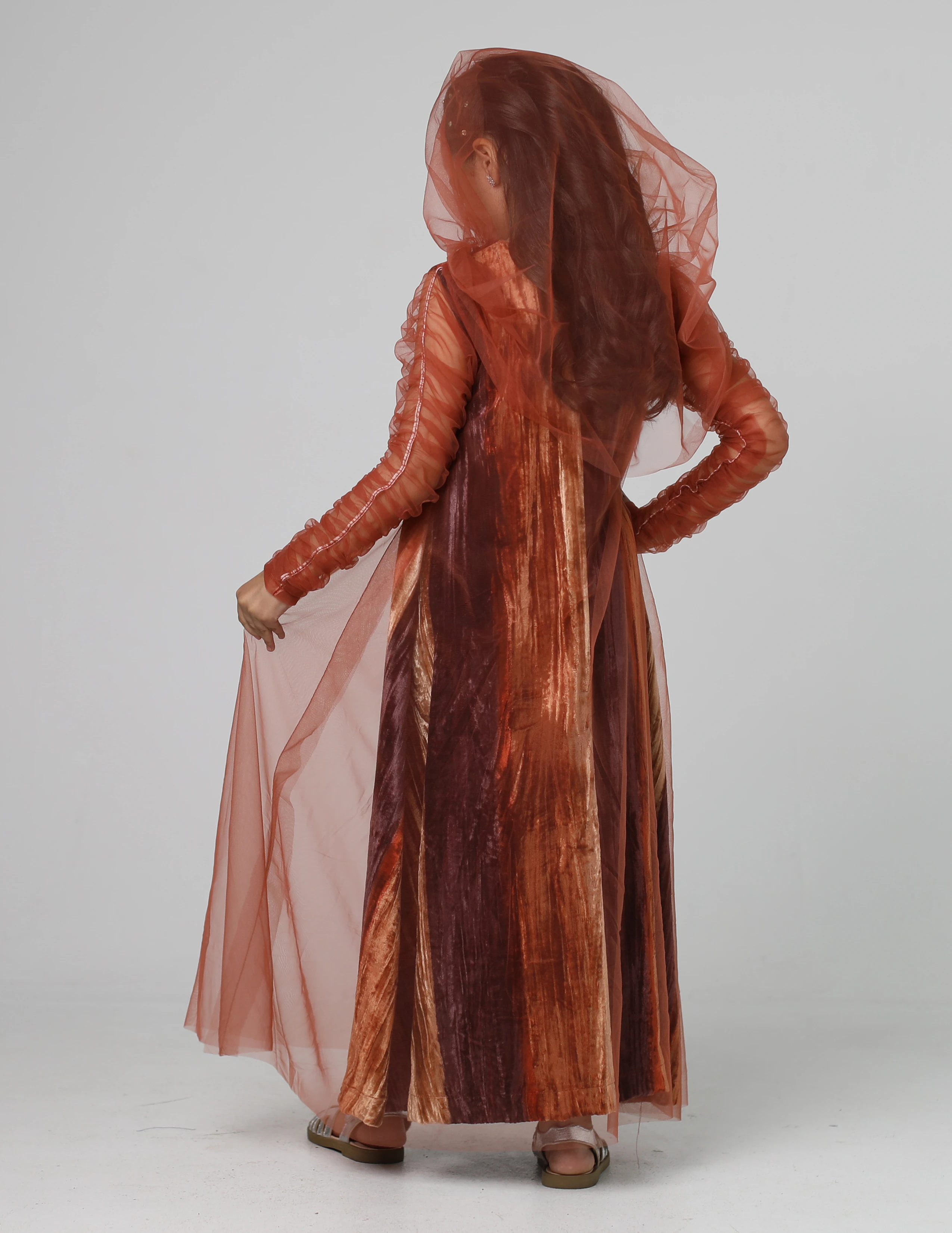دراعة حفر مخمل مقلم برتقالي